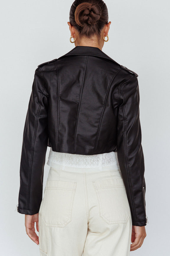Make an entrance in our hot Toulouse jacket. Featuring silver hardware and a crop length. It's perfect for a girls' night out, thrown over your fave LBD and teamed with platform heels for an unforgettable look.