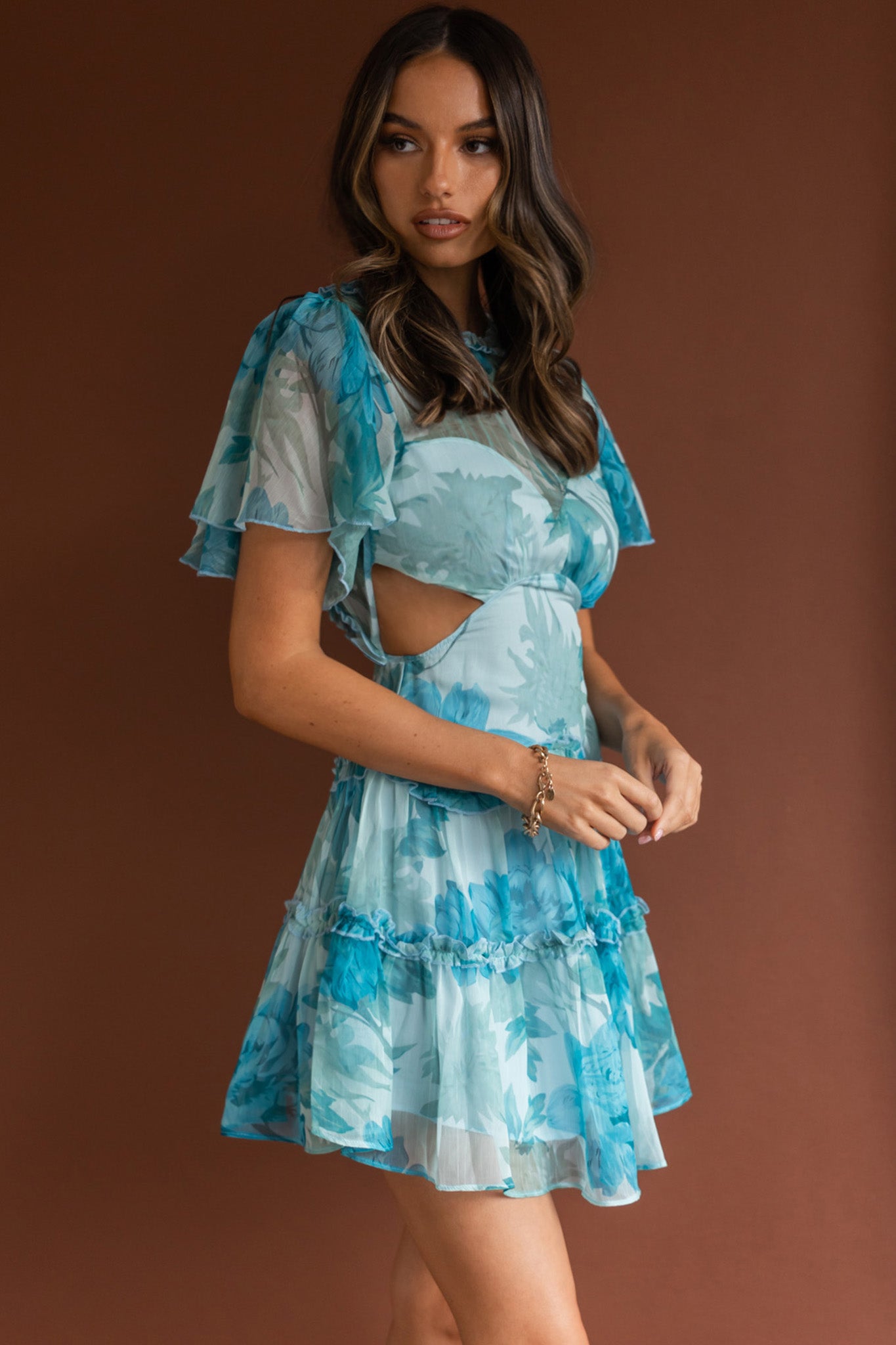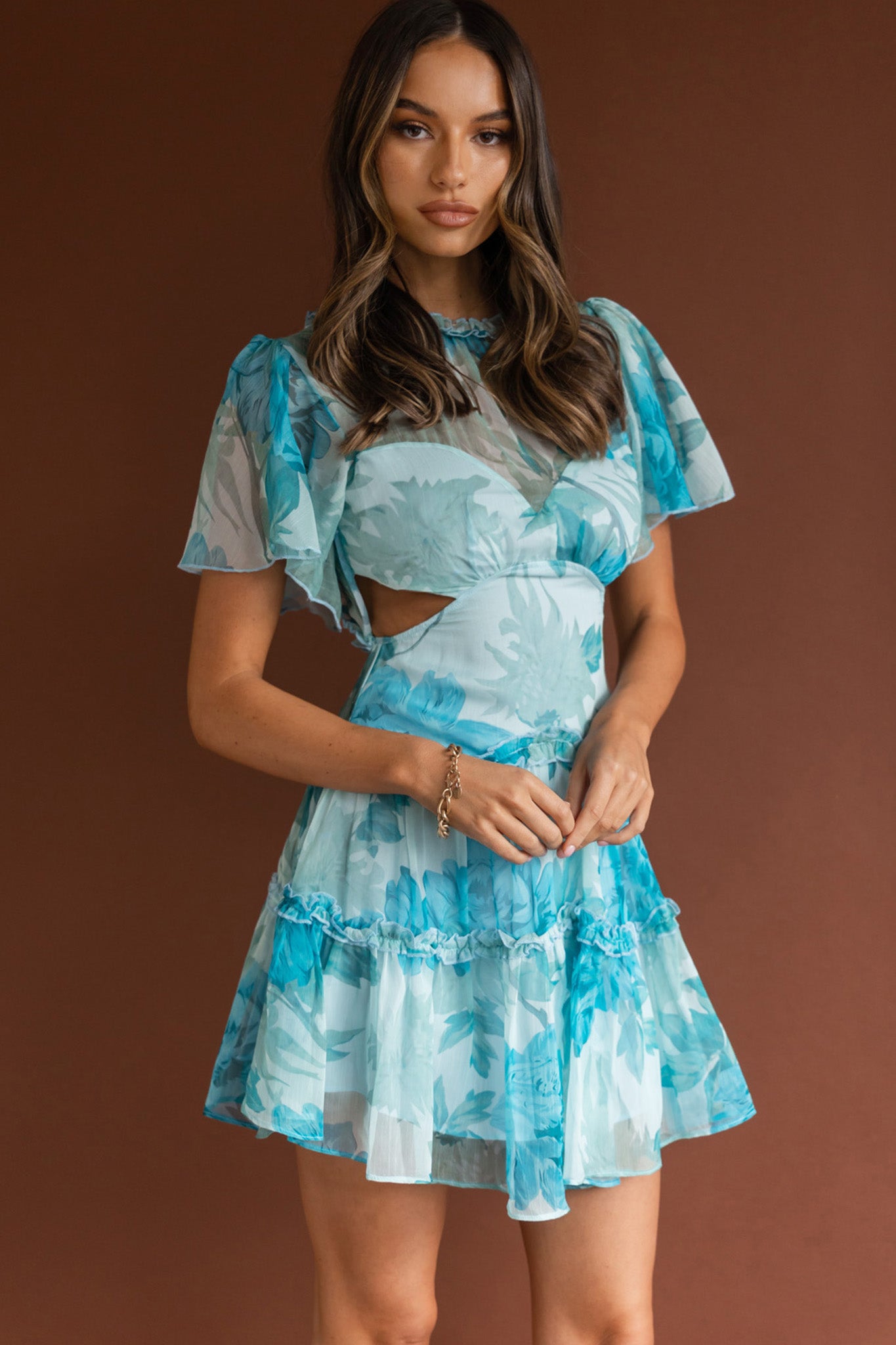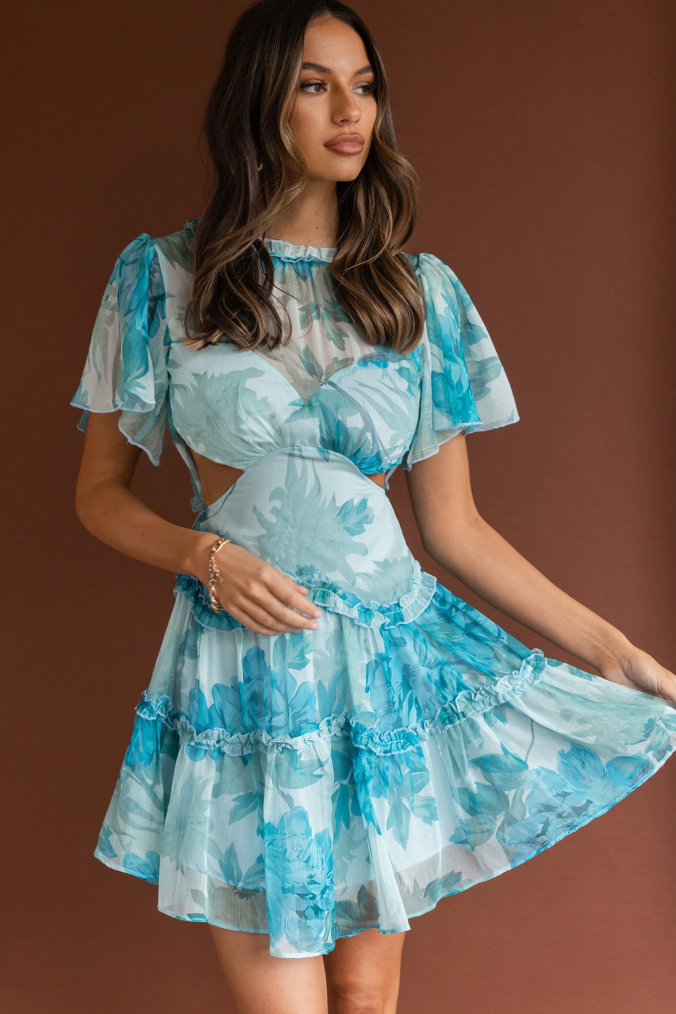 Tres Chic Flutter Sleeve Cut-Out Dress Botanical Blue