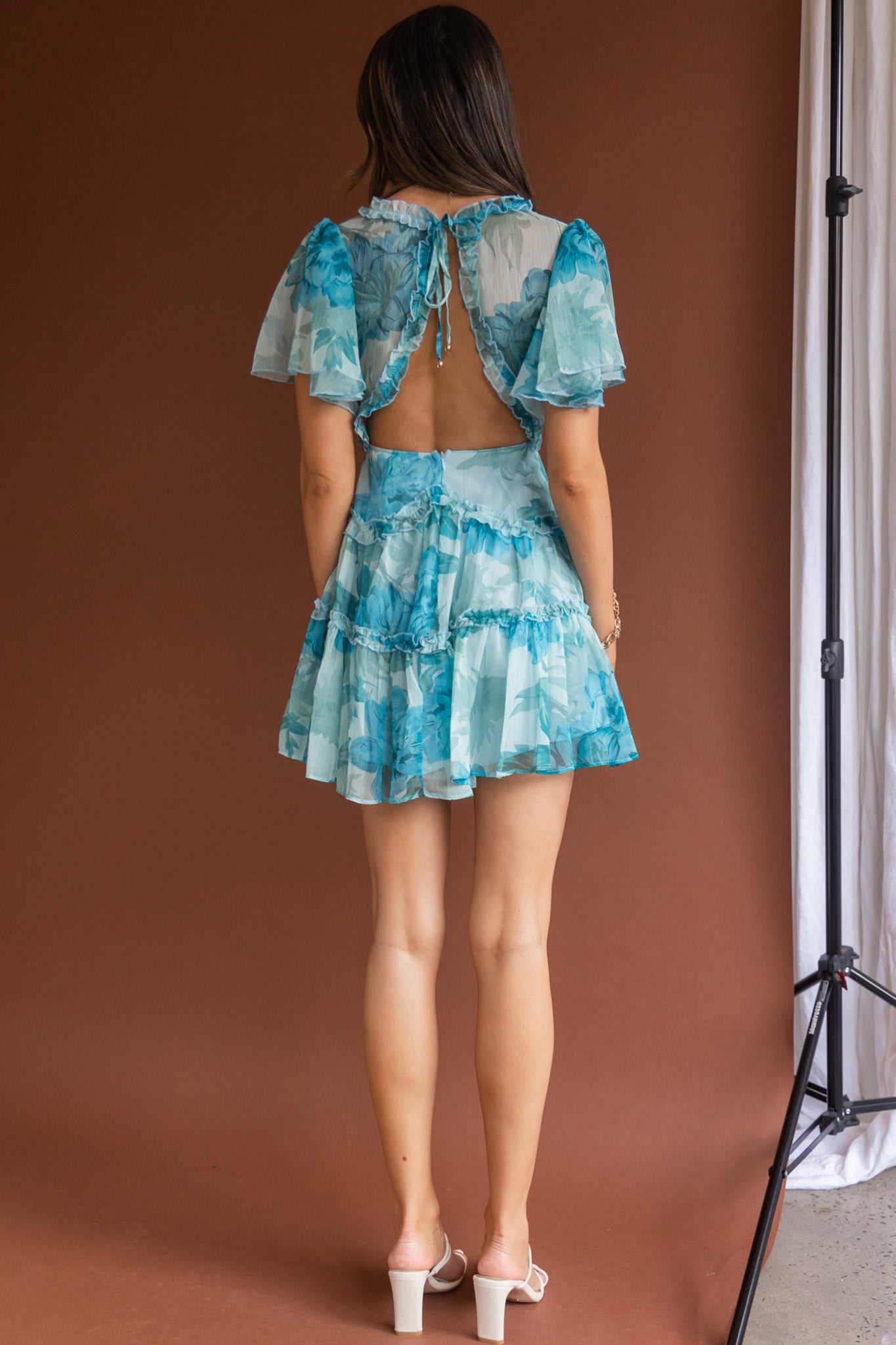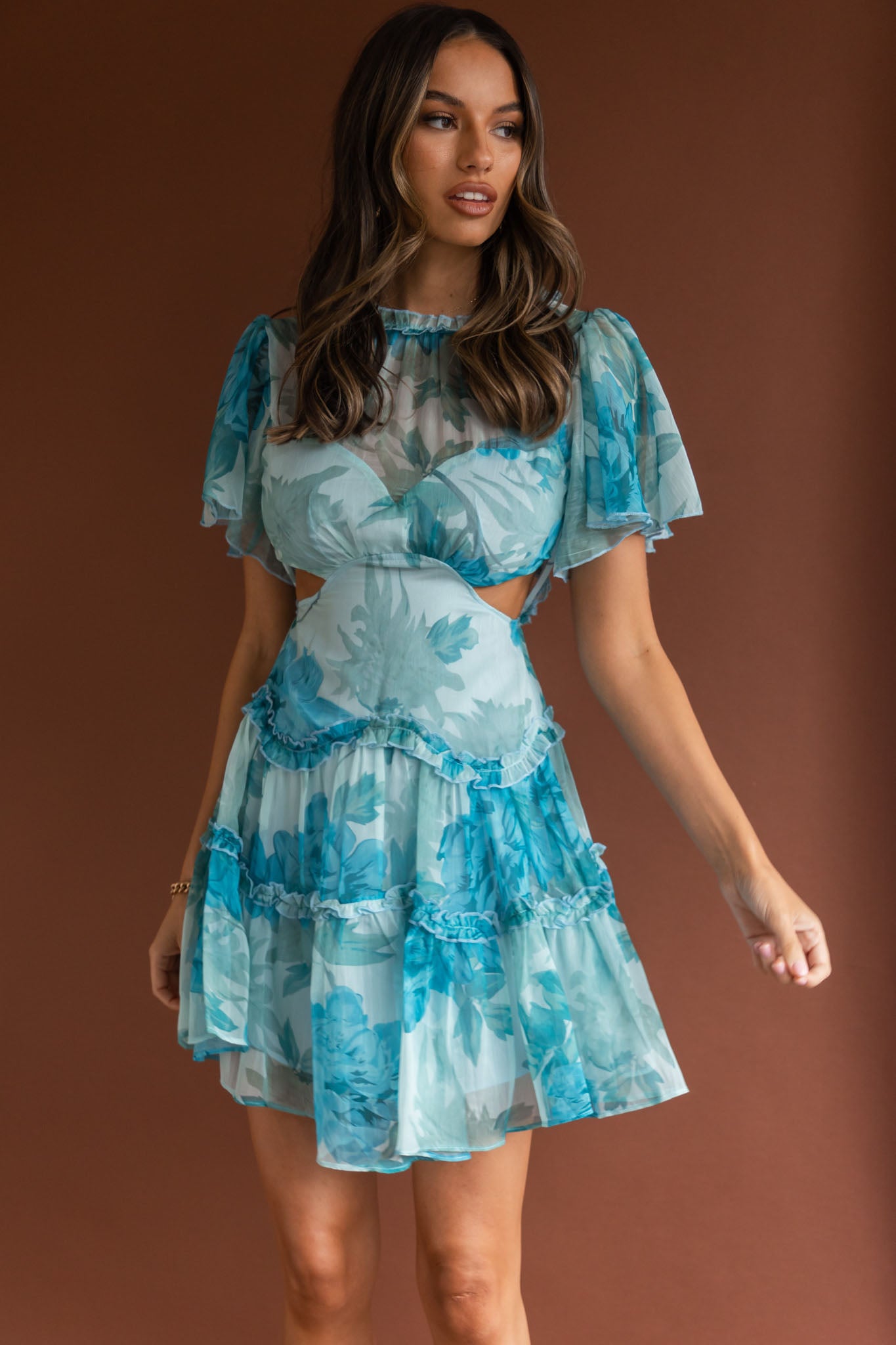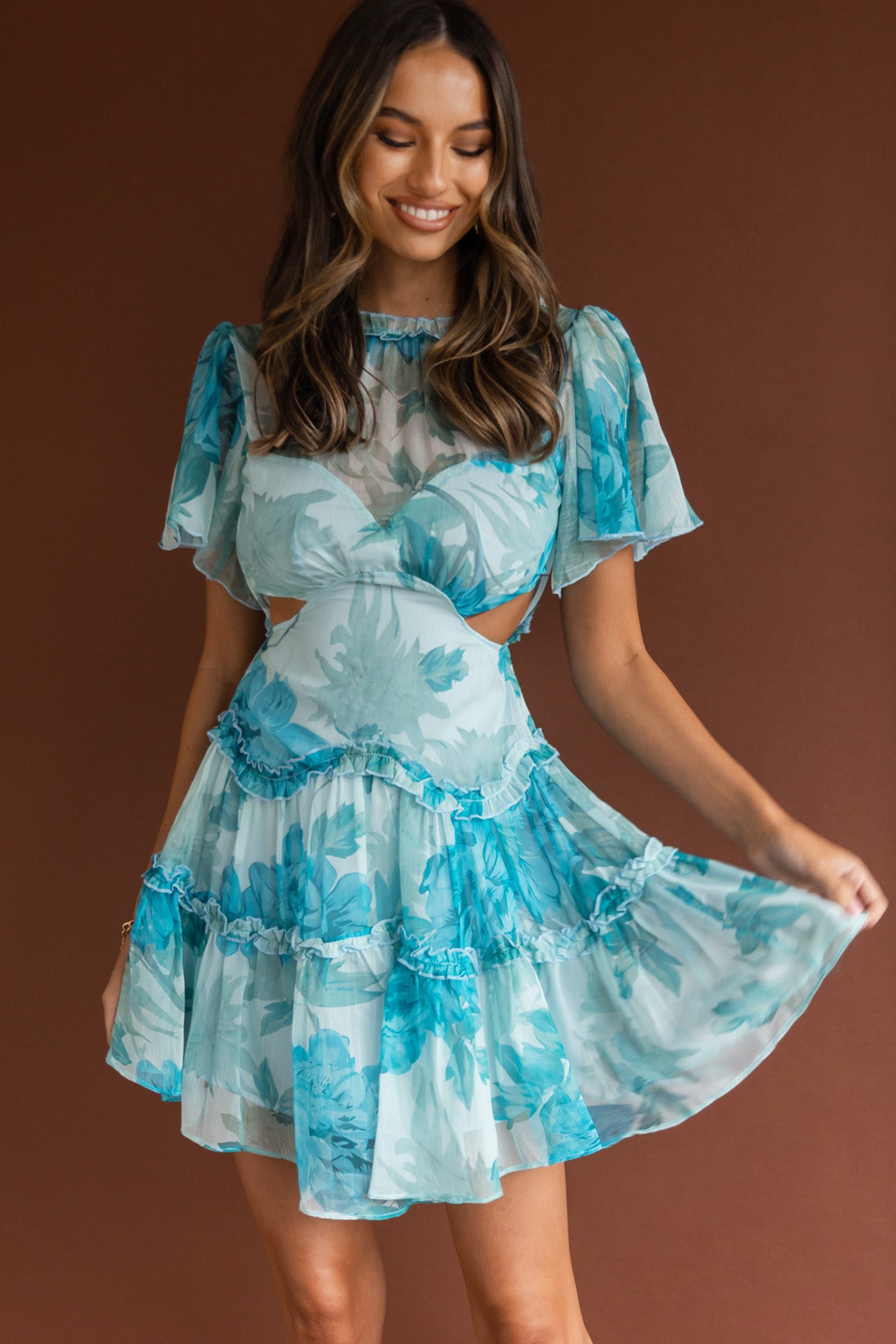 Tres Chic Flutter Sleeve Cut-Out Dress Botanical Blue