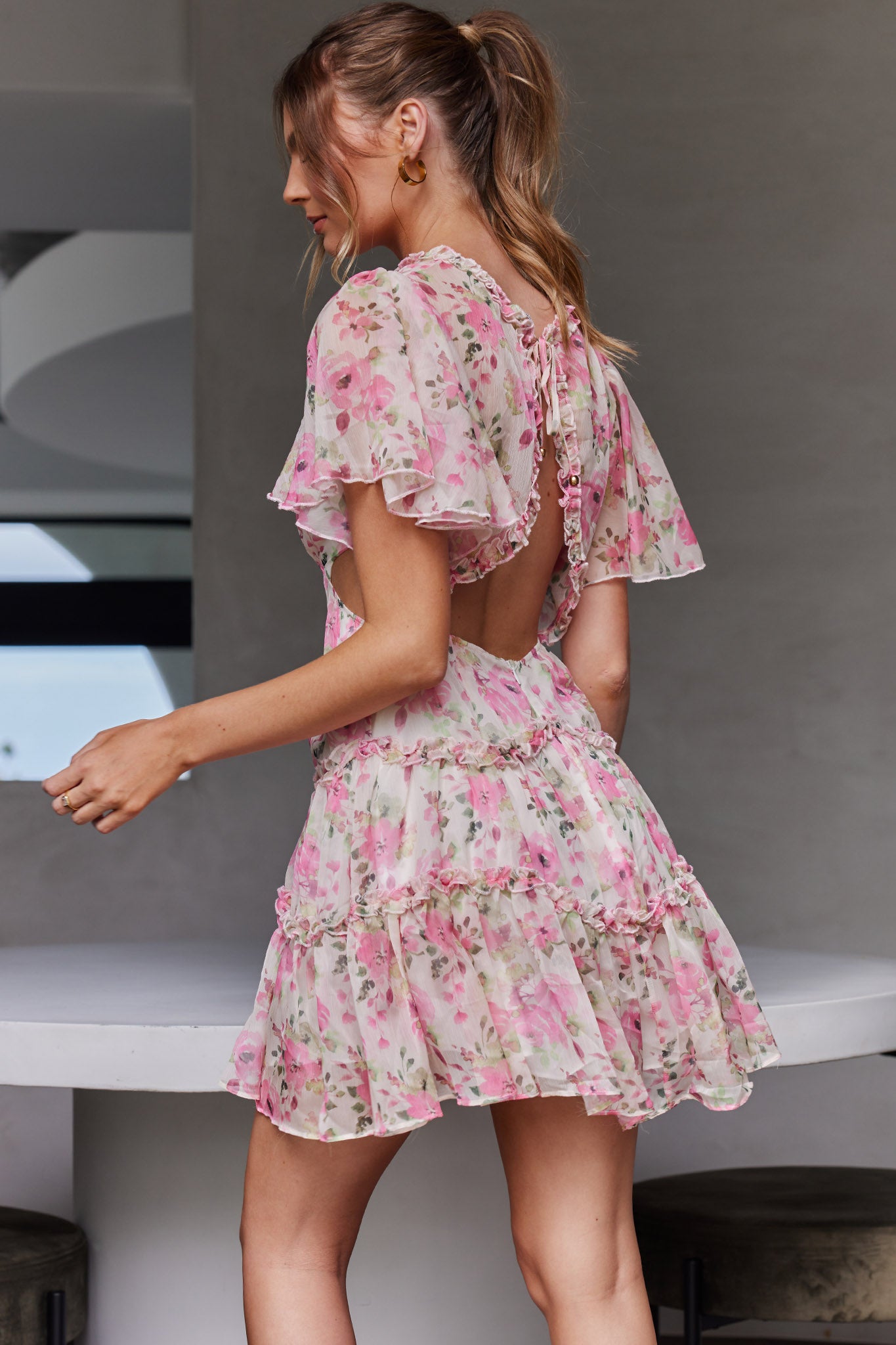 Tres Chic Flutter Sleeve Cut-Out Dress Floral Pink