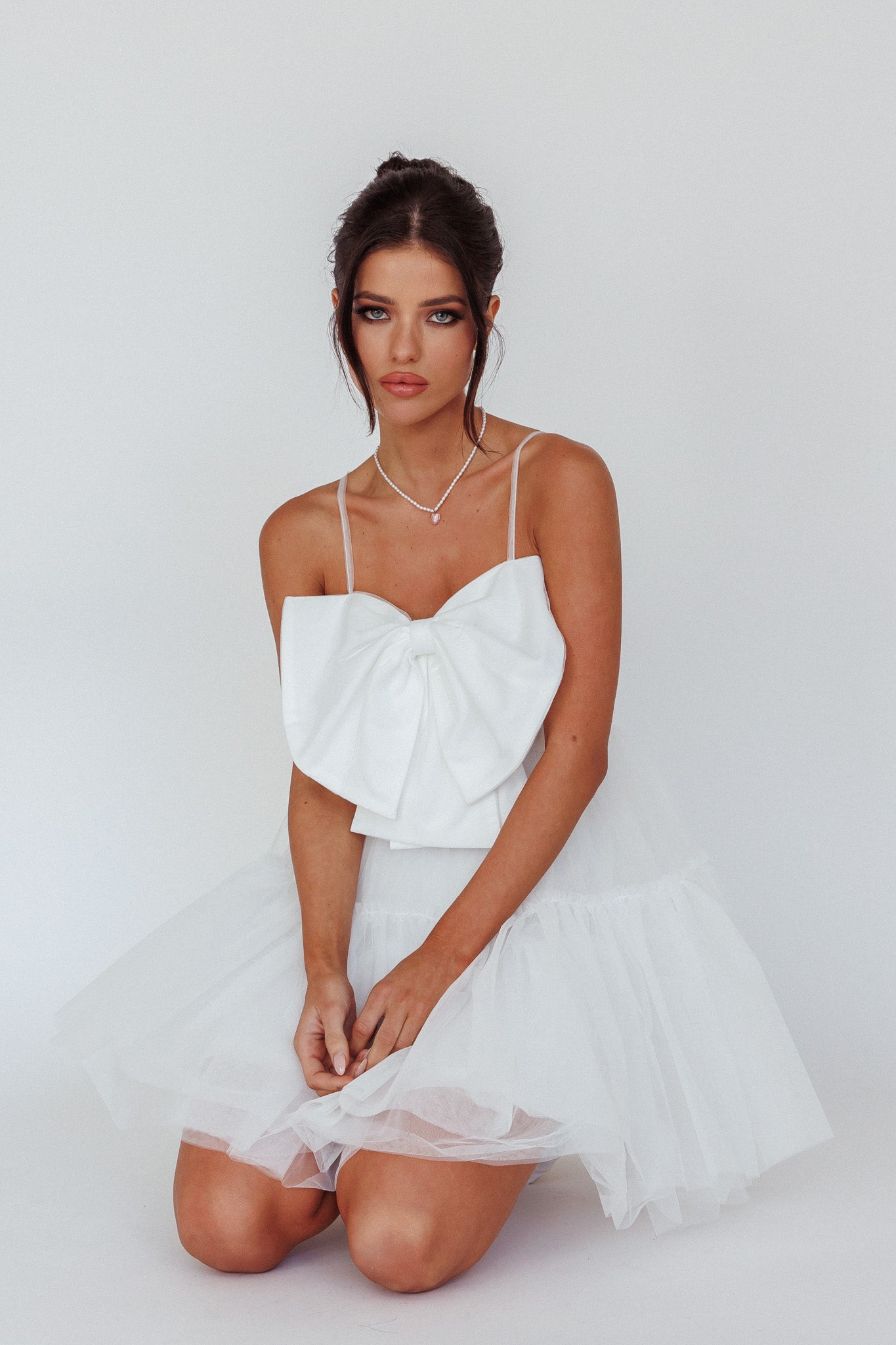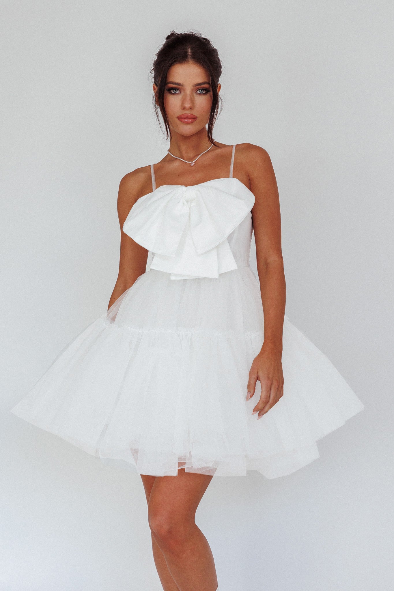 True Wish Bow Tulle Mini Dress White