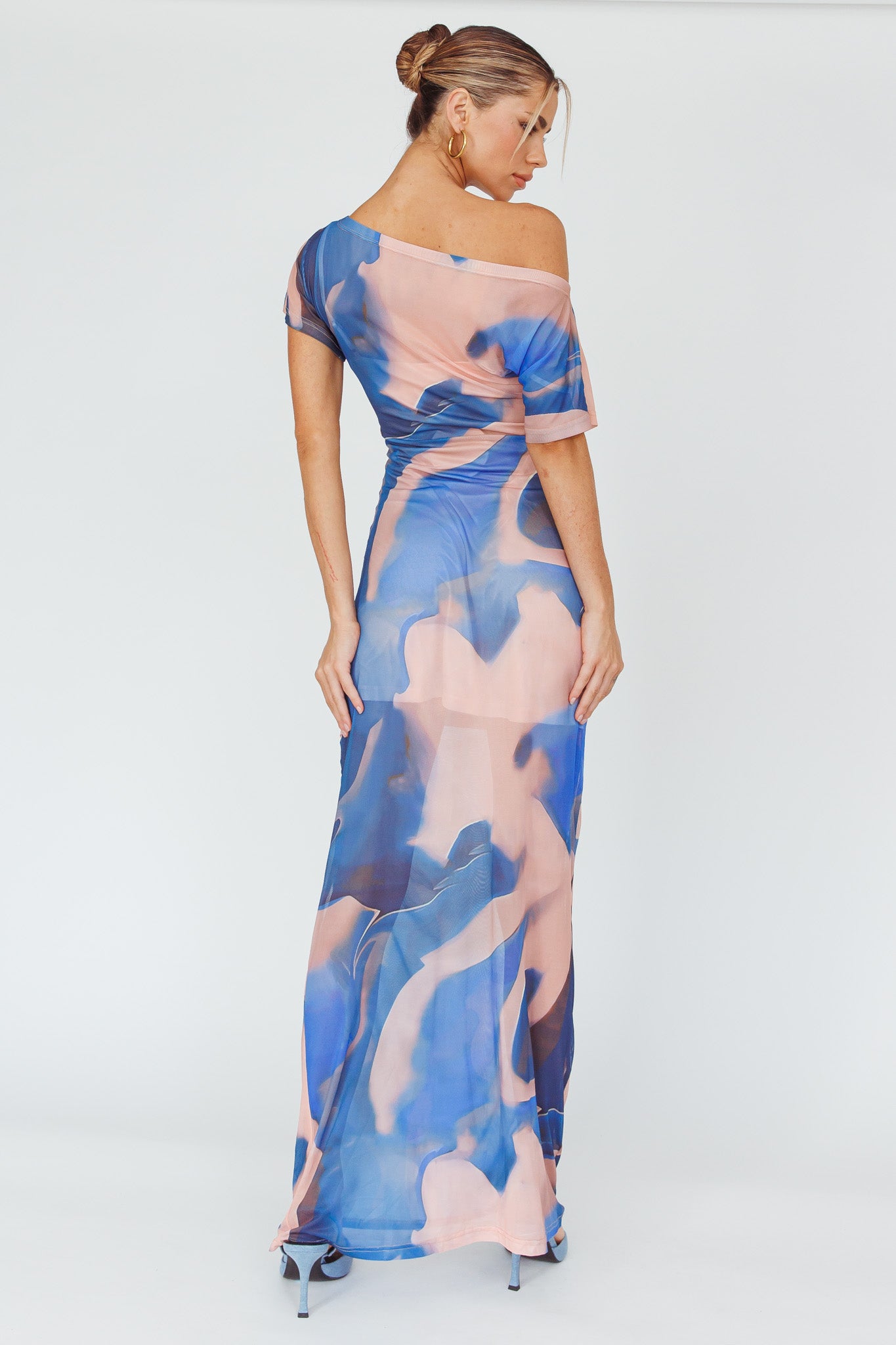 Make an entrance in our hot Tumi maxi dress. Featuring a printed mesh fabric and short sleeves. It's perfect for a girls' night out. Team it with white heels and a purse and get ready to slay!