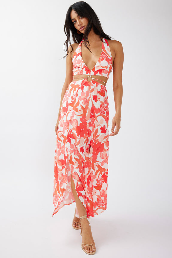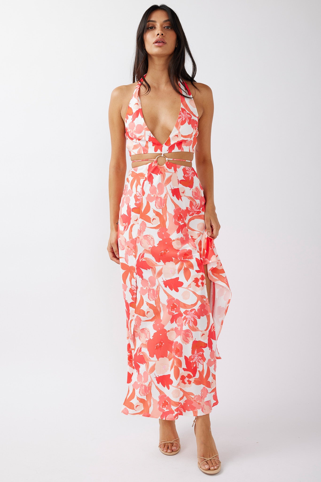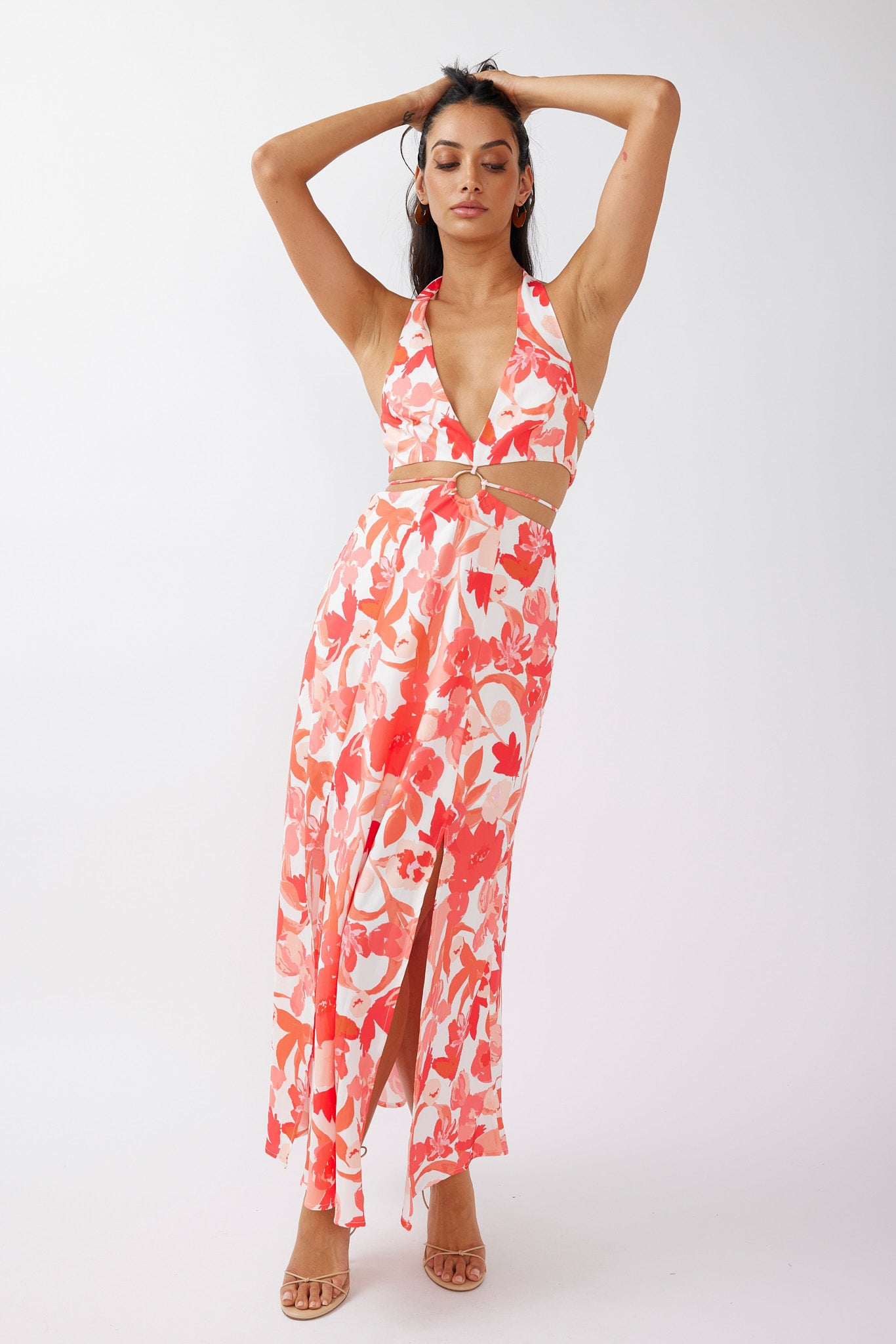 Tuscan Summers Cut-Out Midi Dress Floral Red
