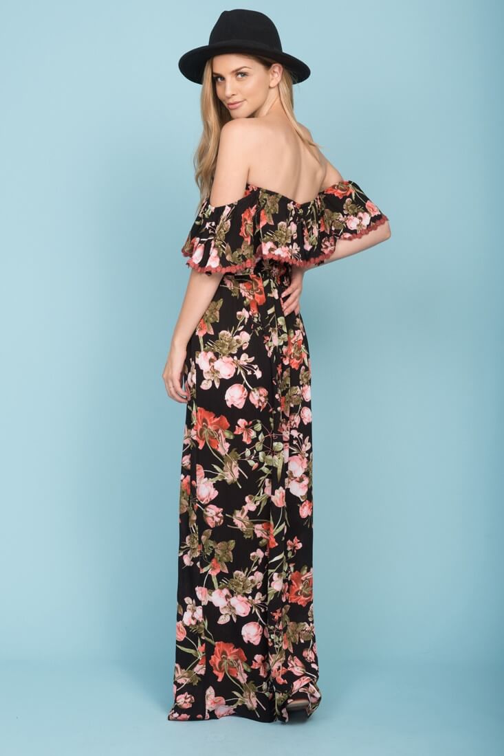 Victorian England meets Sunny California in this ruffled dream of a dress. The Tuscany Off the Shoulder Maxi Dress will keep you looking cool and beautiful at the next family or friends picnic!