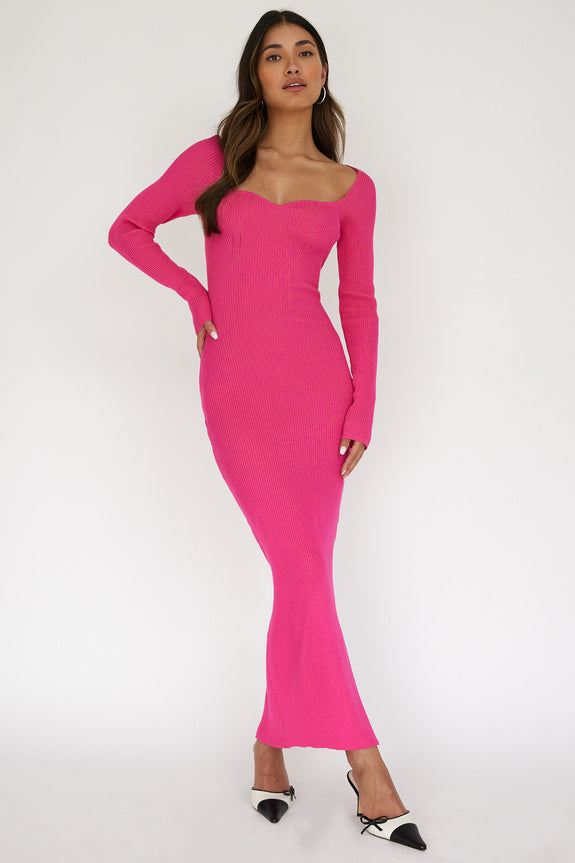 Twilight Moments Long Sleeve Knit Dress Hot Pink