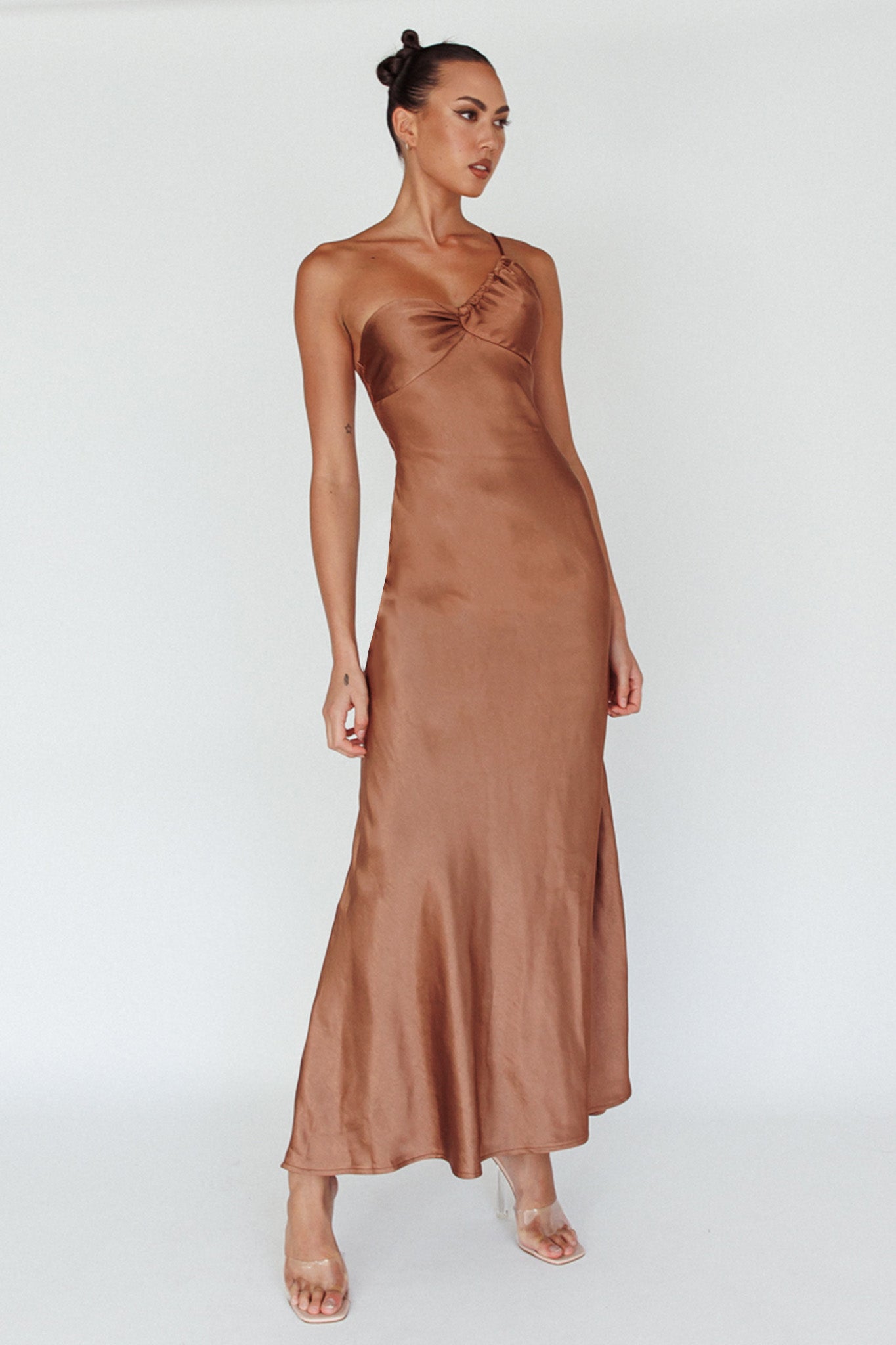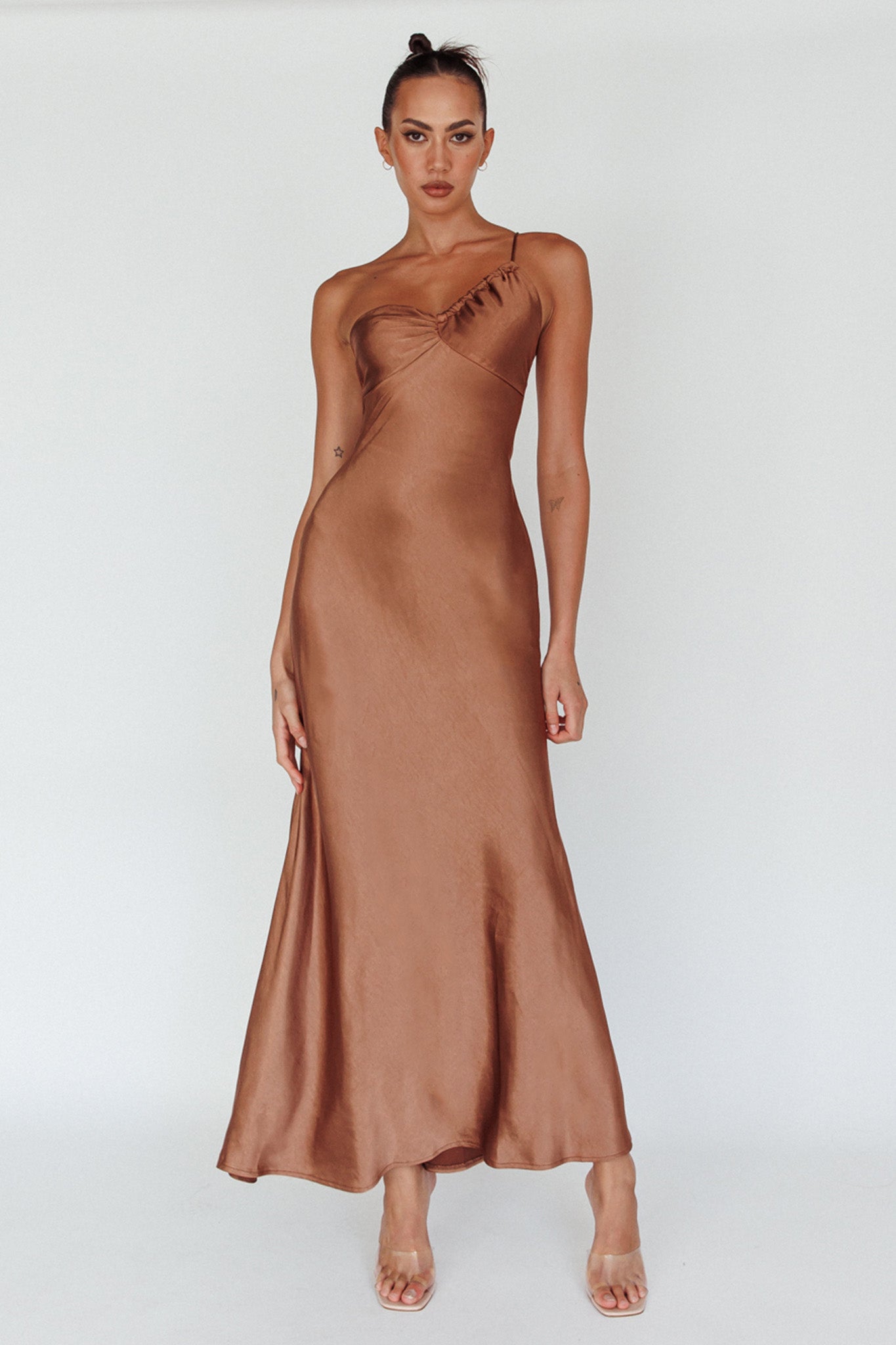 Twilight Tango One-Shoulder Maxi Dress Mocha