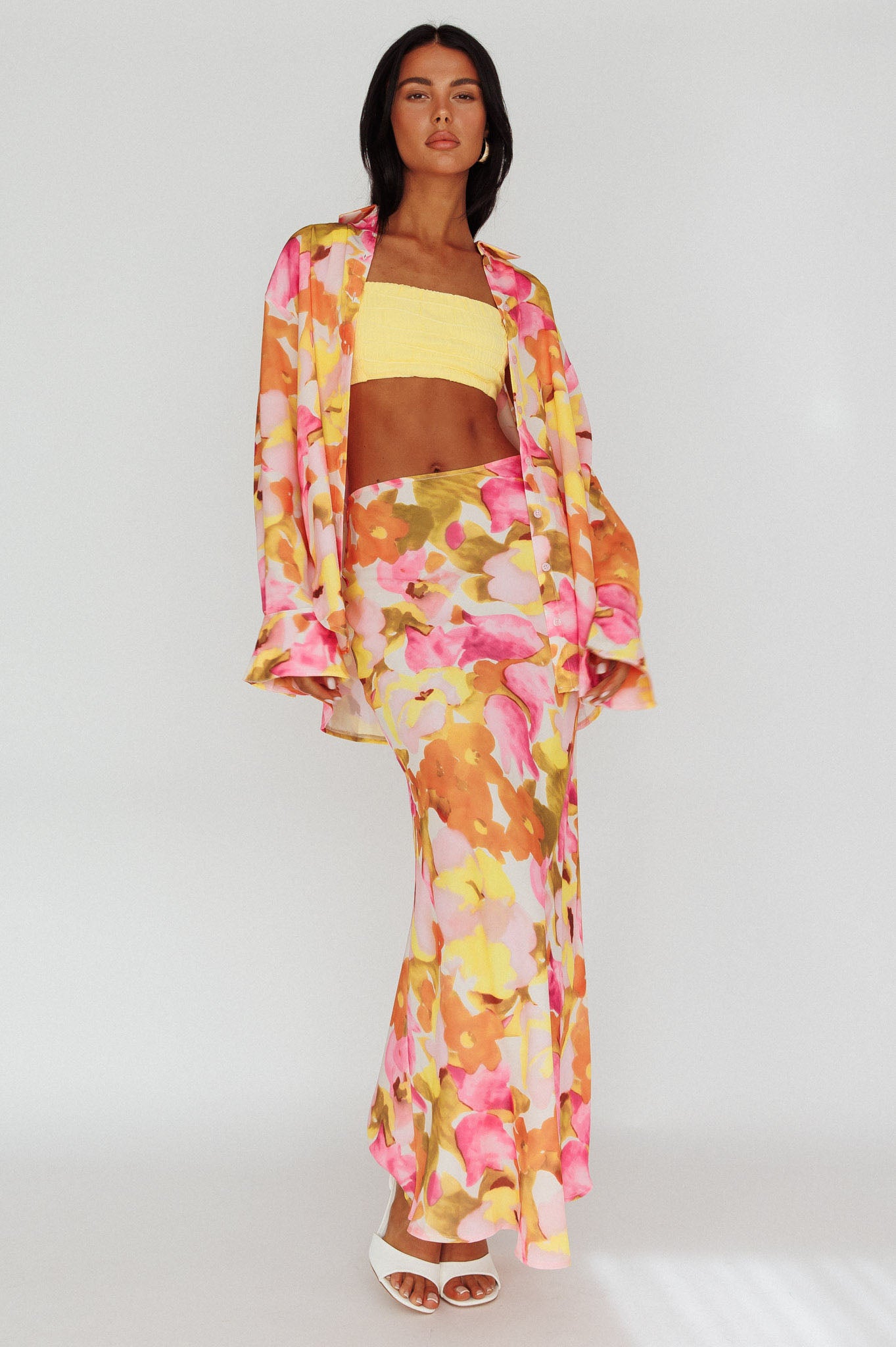 Cruise through your weekend in our chic Vacation skirt. Featuring a bold, floral print and midi length. It's perfect for strolling the farmers' markets or coffee dates with your bff's. Team it with its matching shirt for a look we are loving.