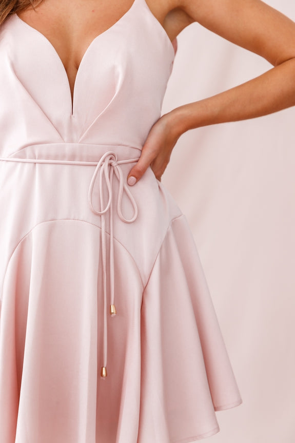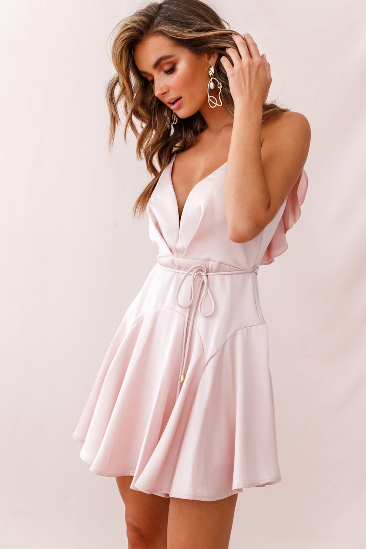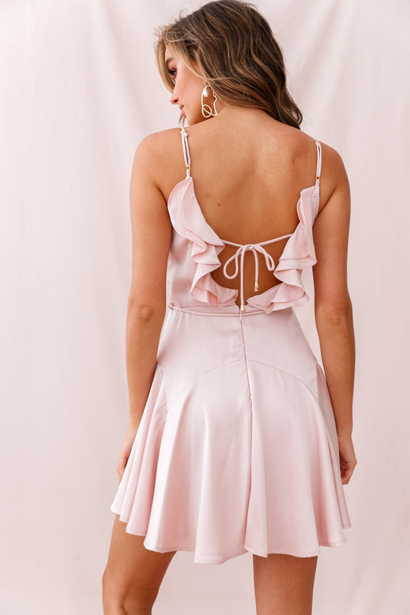 You'll be the Lily of the Valley in this pretty dress. Featuring a plunging neckline, fluted swing skirt, separate waist tie with golden toggles and the prettiest ruffle-detail tie-up back. Perfect for cocktails with your girls or an upscale daytime event. Style it with clear heels and stacked gold bangles for a look we are all about!
