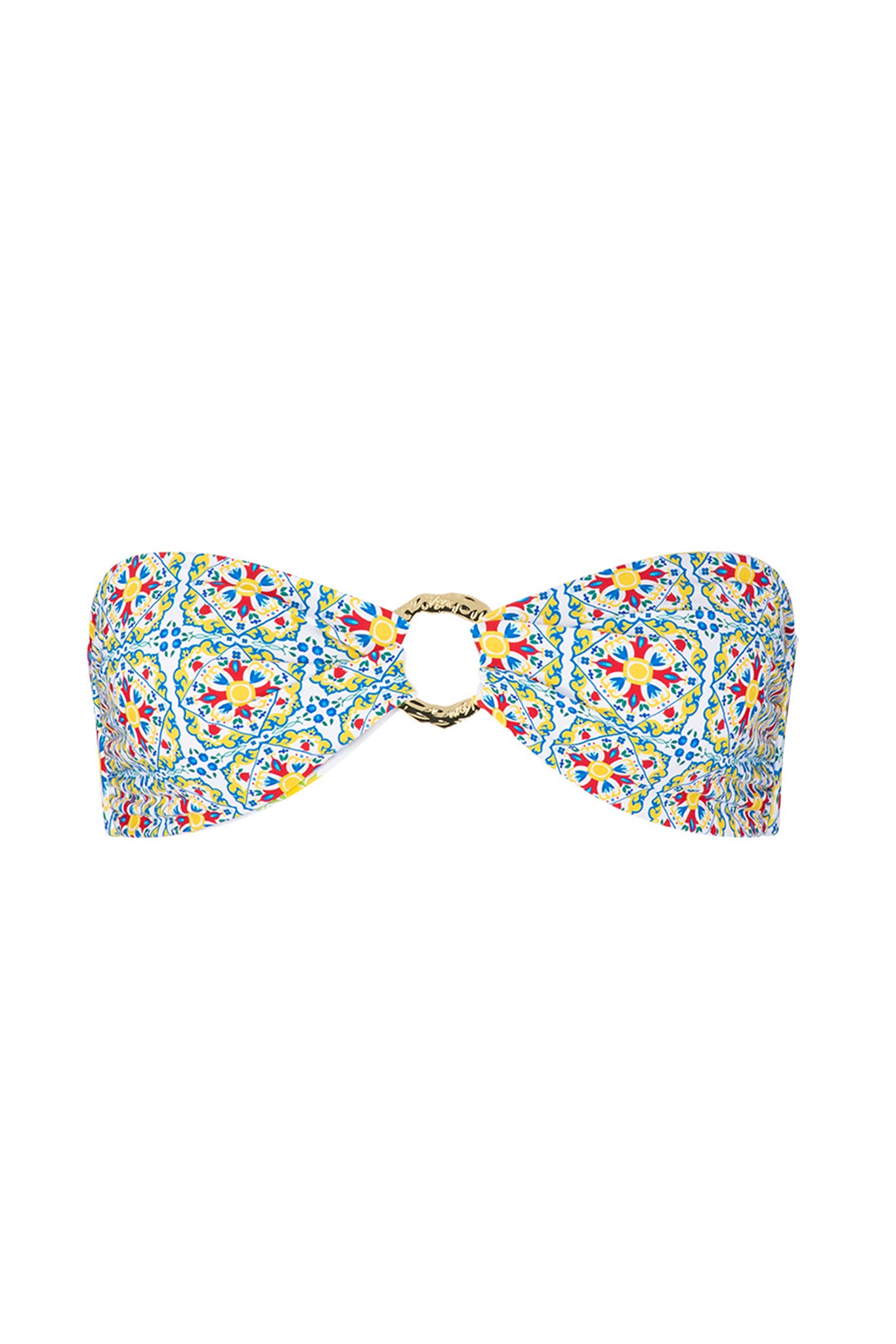 This reversible design has a delicate lemon print on one side and an Italian tiling print on the other, as well as a custom-designed gold ring to complete the look. It is part of Story 3 in Vacanza, a drop that embodies the Italian beautiful coastlines, amazing cuisine, culture and way of life.