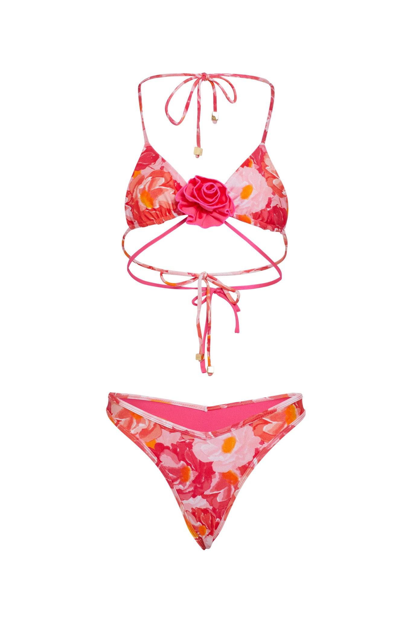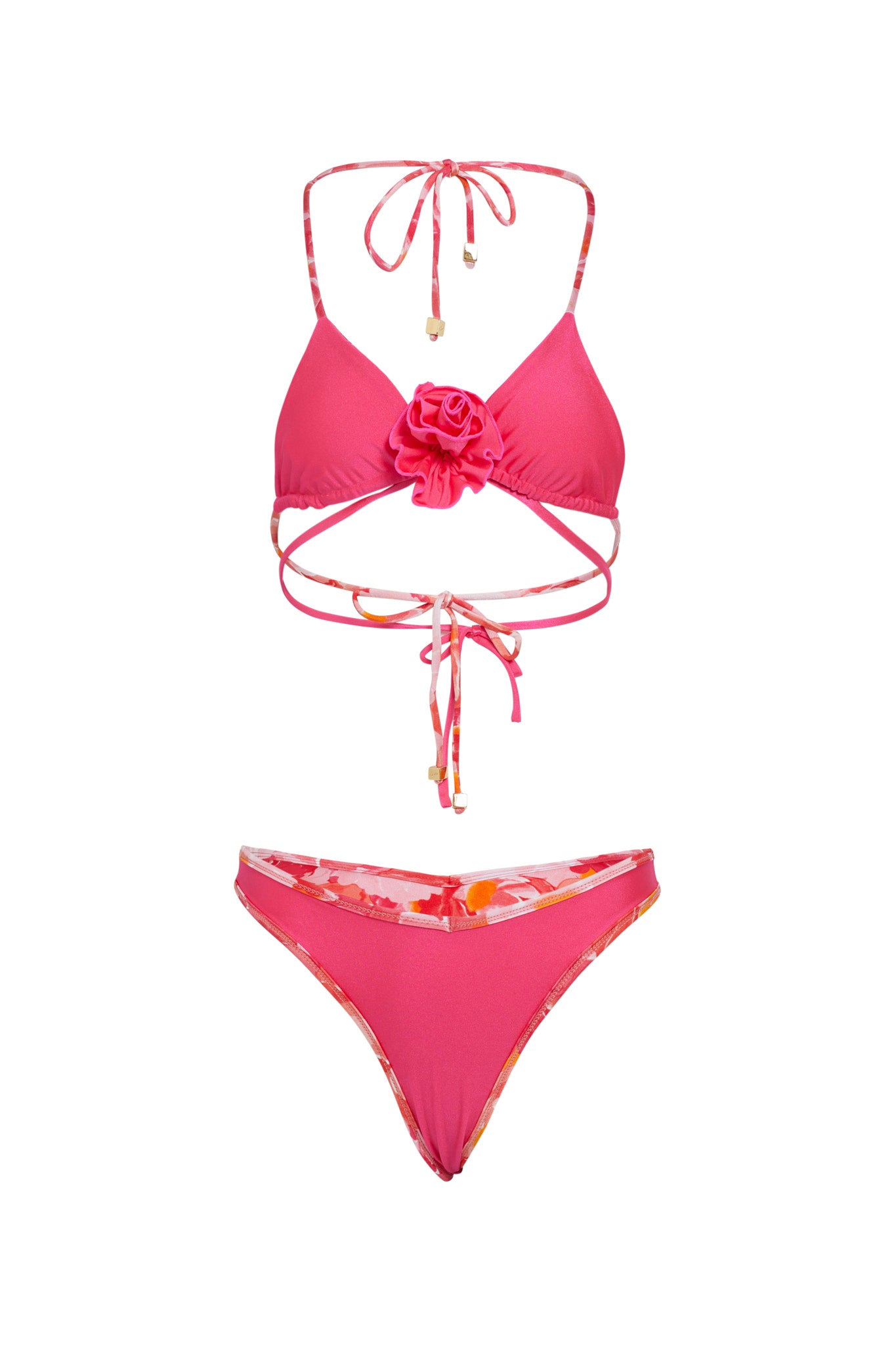 Say hello to the Blair bikini top by VDM The Label. Featuring a reversible, triangle design with a hand painted floral on one side and a metallic pink on the other. The Blair top is equipped with an adjustable neck and back tie, ensuring both comfort and support. Team it with the Marley bottoms for a hot look. VDM The Label take pride in making sustainable products that look good, feel good and do good! This bikini has ECONYL® lining, made of regenerated fabric. This fabric is created from waste found in landfills and oceans etc. around the world. ECONYL® regenerated nylon reduces nylon's global warming impact by up to 90%.