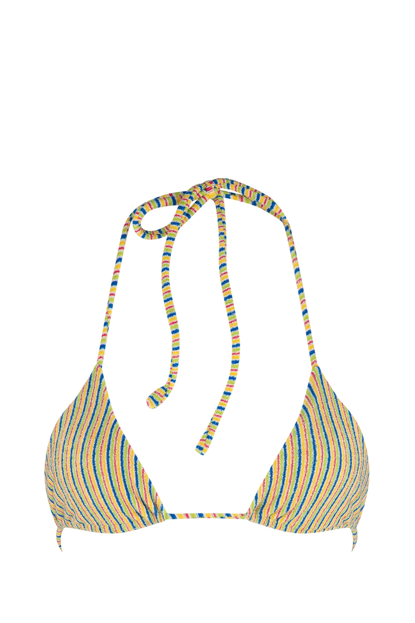 This reversible design features a rainbow striped terry toweling on one side and a matte lime colorway on the other. It is part of Story 3 in Vacanza, a drop that embodies the Italian beautiful coastlines, amazing cuisine, culture and way of life.