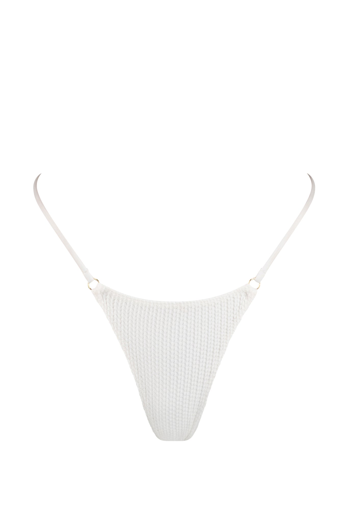 This reversible style features dainty patterned cut-outs on one side and a matte colorway on the other, with two gold rings connecting the straps to the bottom. It is part of Story 3 in Vacanza, a drop that embodies the Italian beautiful coastlines, amazing cuisine, culture and way of life.