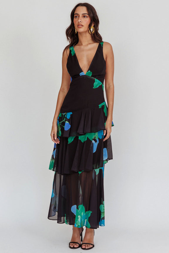 Jaws will drop when you float by in our gorgeous Veda dress. With its pretty, tiered ruffles and strappy back, it's fit for a princess. Perfect for a flirty first date teamed with heels and a tote for a dreamy look.