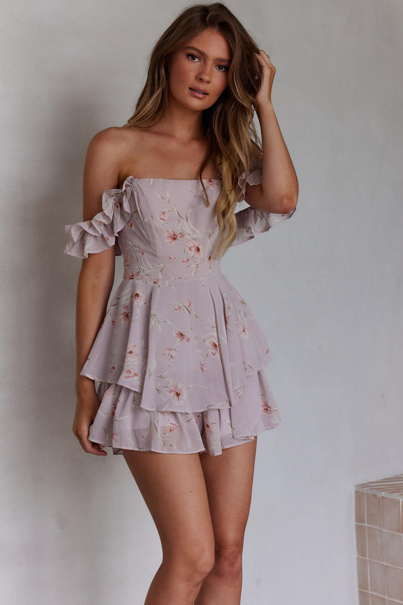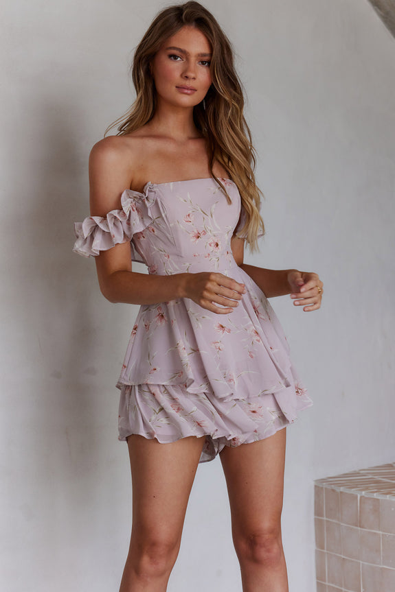 Verona Off-Shoulder Romper Floral Print Pink