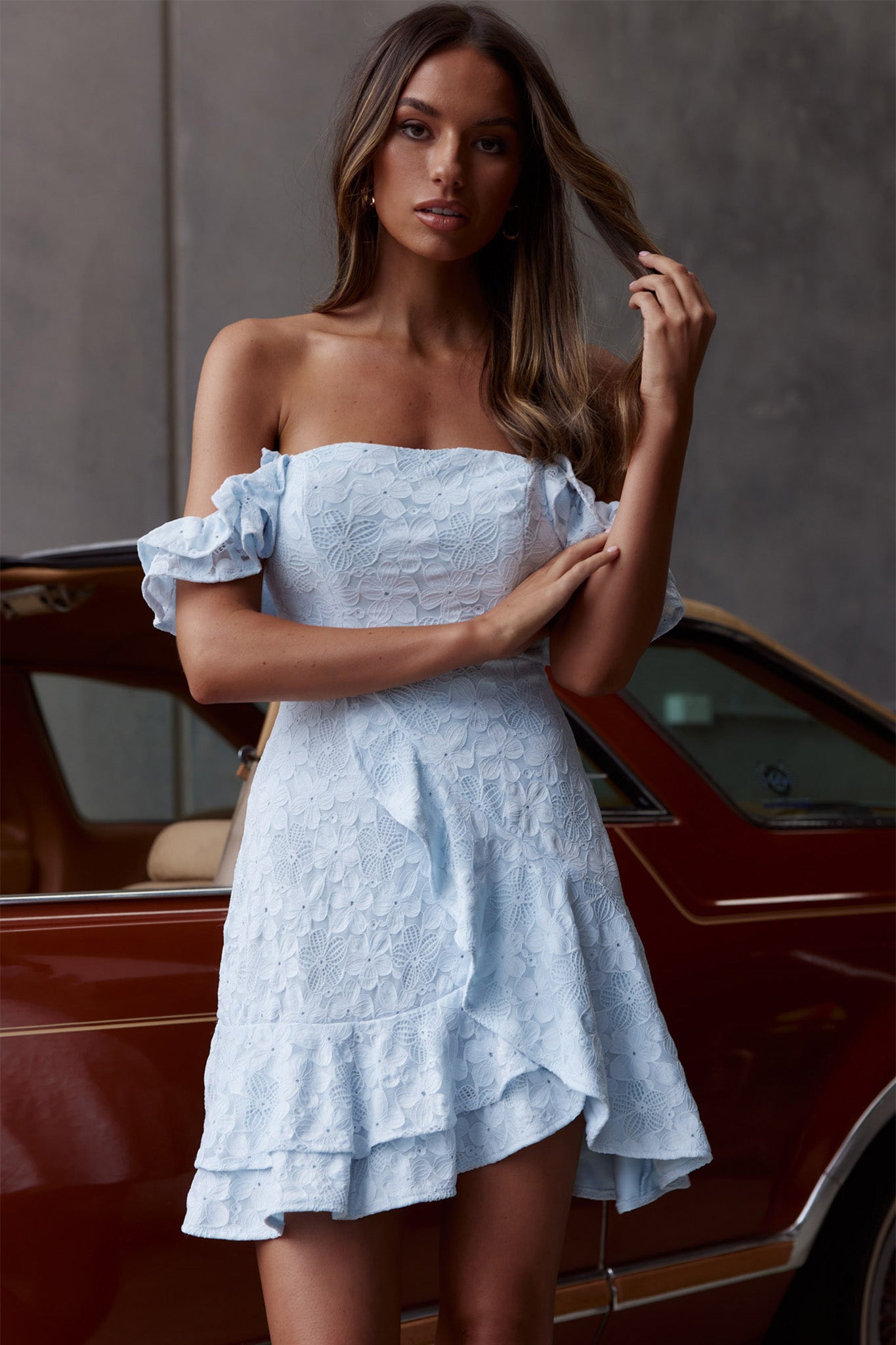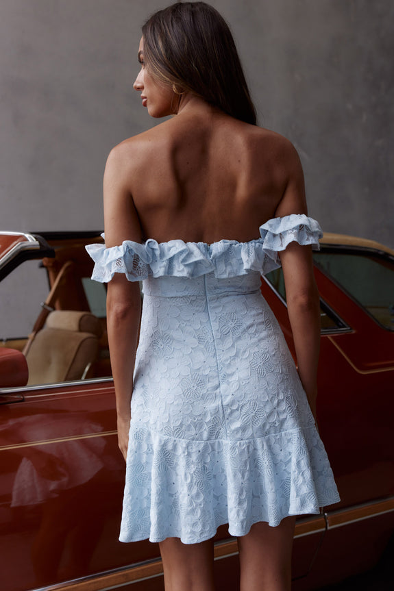 Verona Off-Shoulder Ruffle Mini Dress Steel Blue
