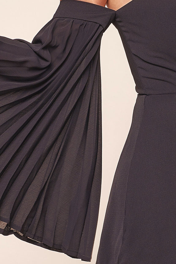 So many compliments, you'll be blushing for a week! The Viva Off the Shoulder Angel Bell Sleeved Romper has a beautiful, soft color and pleated bell sleeves for a classy look. Pair with nude heels and cute studs.