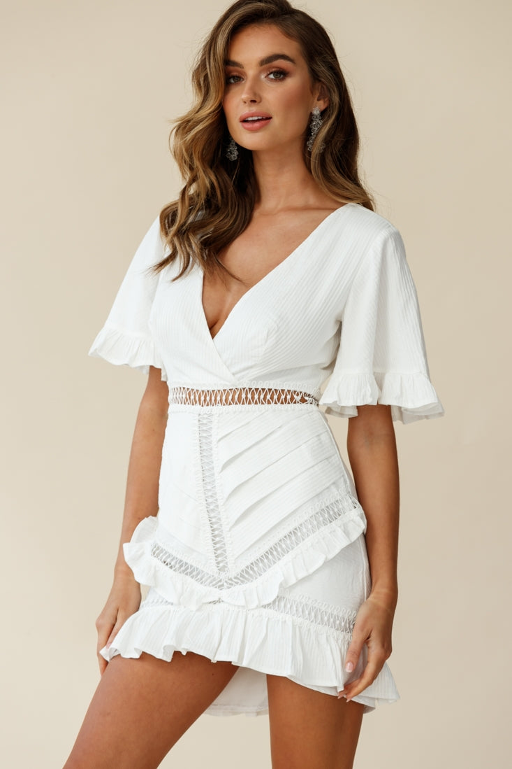 We are head over heels for our Walk This Way dress. Featuring gorgeous pintuck and ruffle detailing in the skirt, lace cut-out trim and floaty angel sleeves. Perfect for a first date with the boy you've been insta-stalking for three months. Team it with strappy nude heels and statement earrings and you'll be guaranteed a second date.