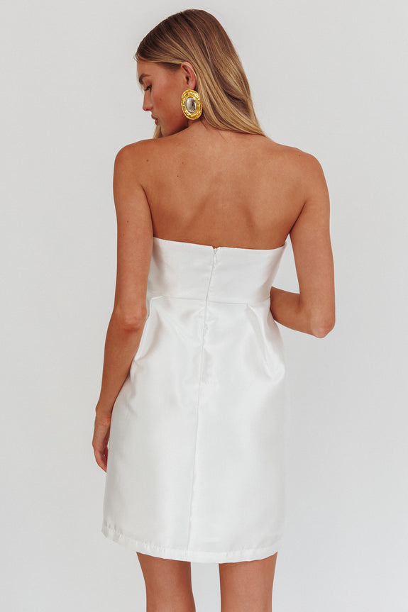 Make a statement in our adorable Waylon mini dress. It features a strapless design and super cute bow details in the bodice. It's perfect for graduation or a romantic anniversary dinner with your love. Team it with strappy, white heels and a clutch for an unforgettable look.