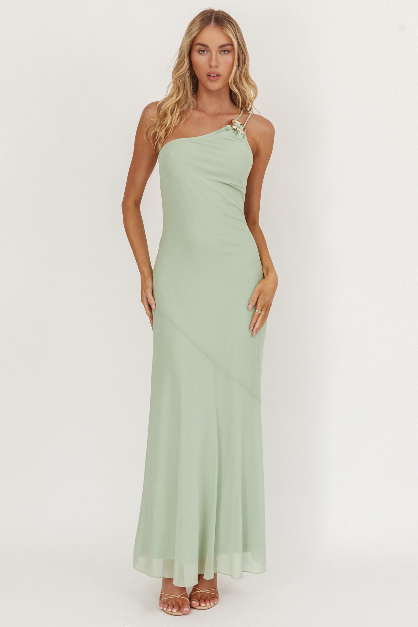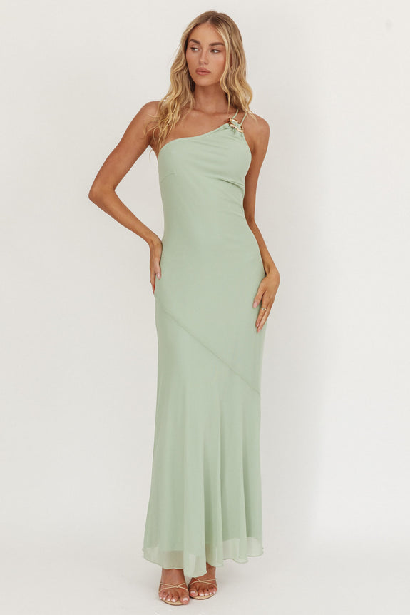 We Belong Together One-Shoulder Buckle Maxi Dress Mint