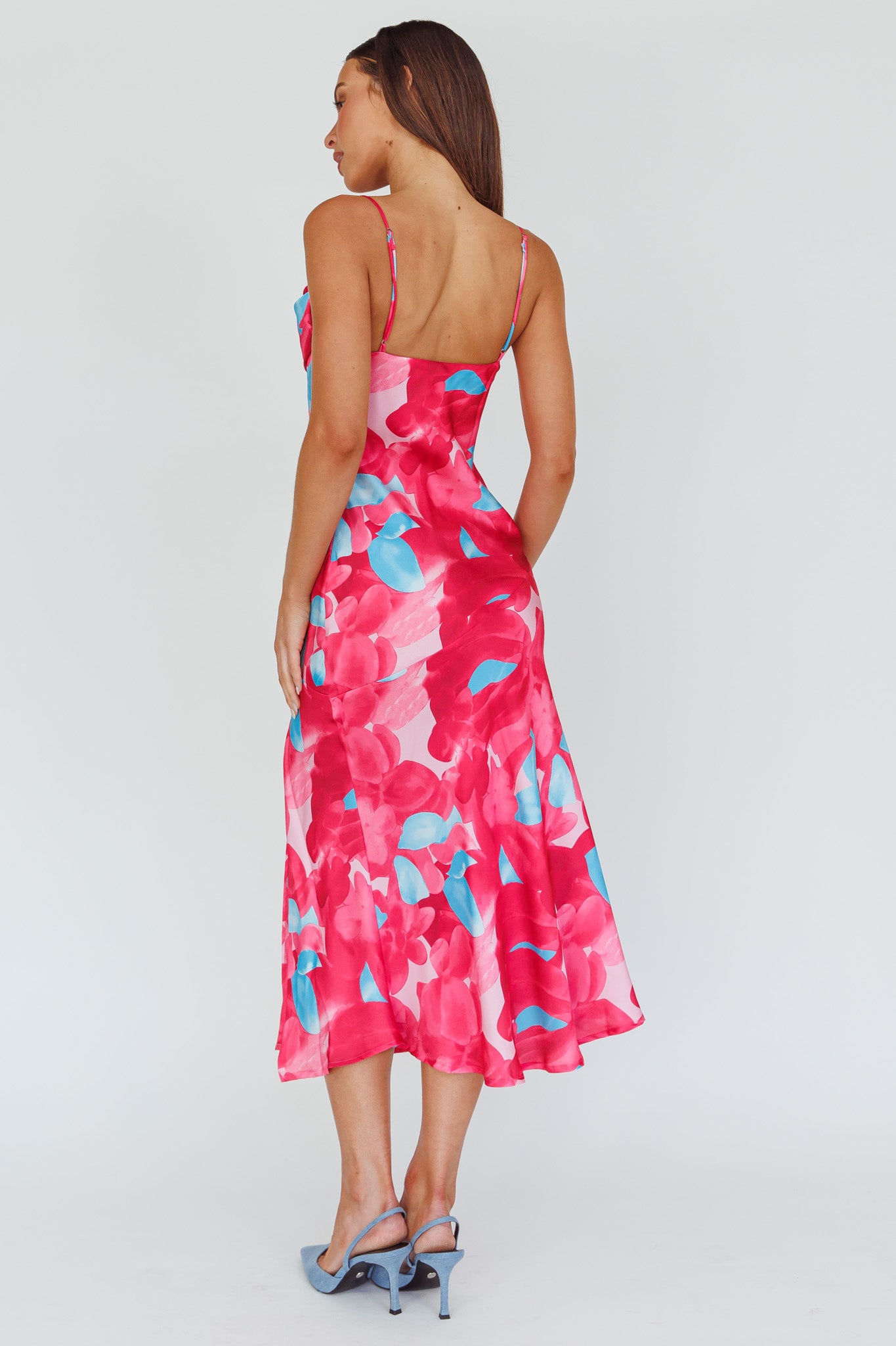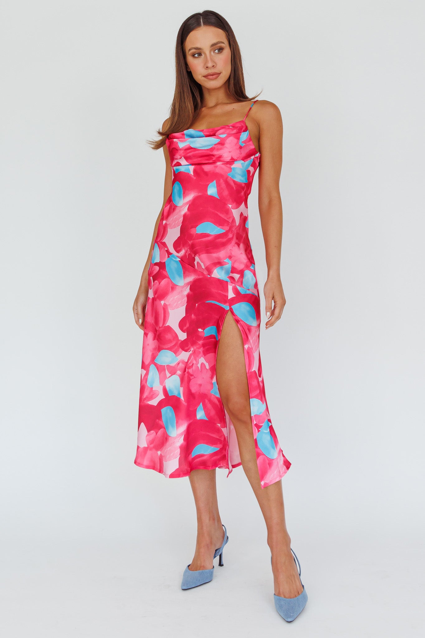 Well Versed Pleated Bust Front Split Dress Flora Pink