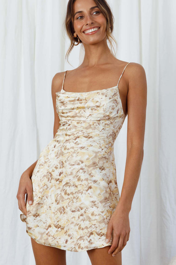 Well Versed Pleated Mini Dress Watercolor Mottle Print Yellow