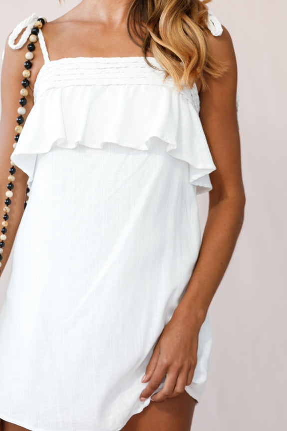 Breeze through your day in our pretty West dress. Featuring a layered ruffle bust with braid detailing, braided rope tie-up shoulders, pockets and a zipper up the back. Perfect for a weekend getaway teamed with tennis shoes and a basket bag.