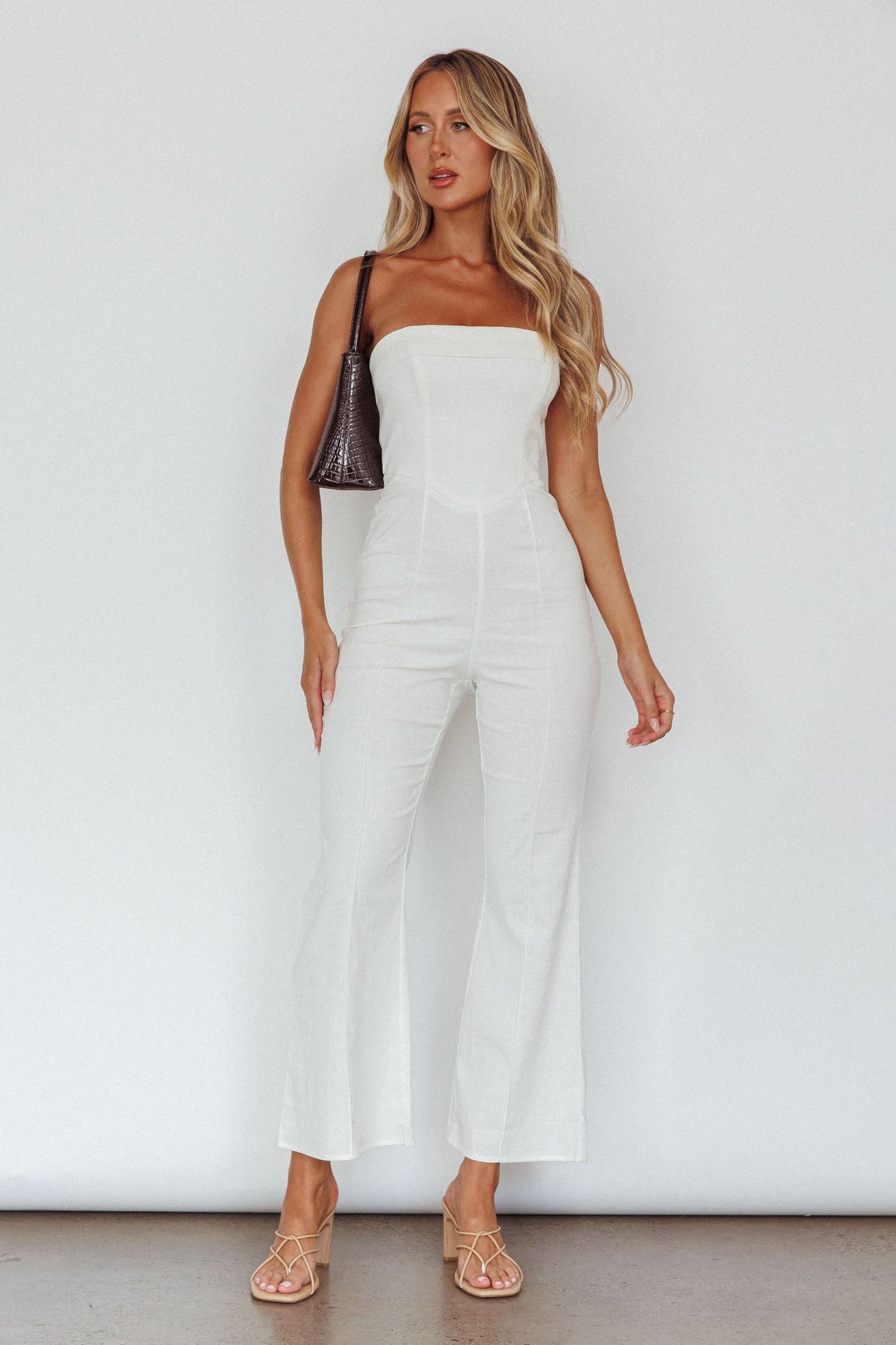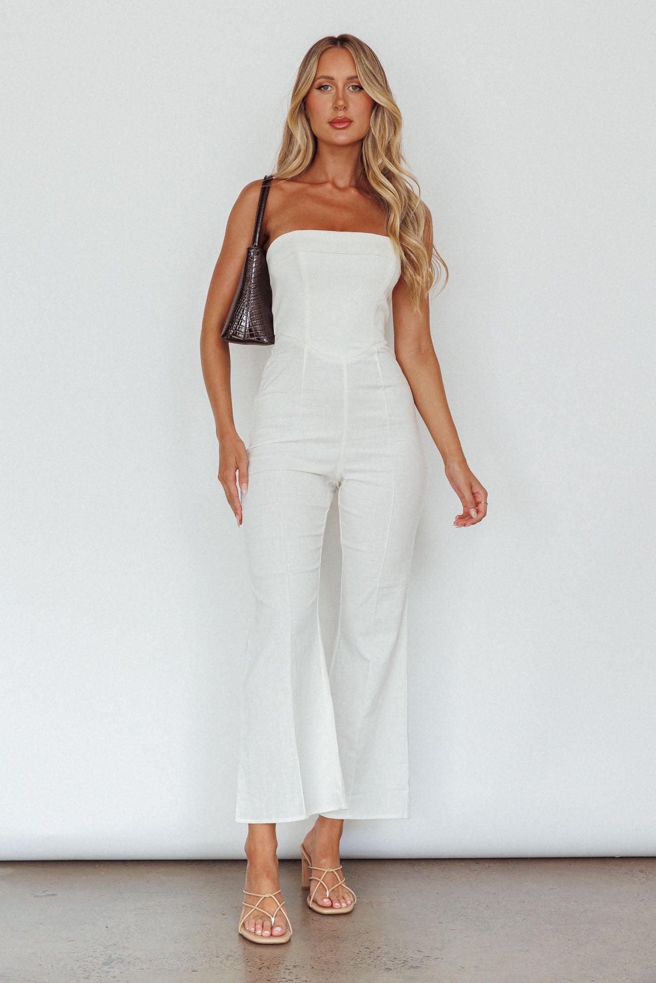 Make a statement in our chic What's The Catch jumpsuit. Featuring a strapless style and small flare in the pants. Perfect for your 9-5 or lunch dates with your girls. Team it with mules and a tote for a look that will turn heads.
