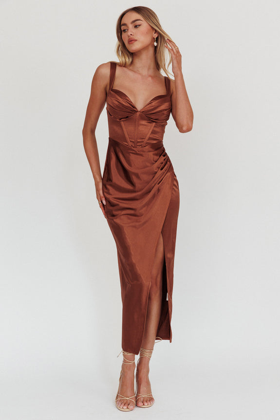 Whimsy Pleated Bust Midi Dress Chocolate