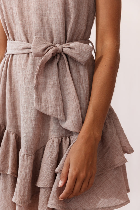 Wilshire Tiered Ruffle Hem Spaghetti Strap Dress Sandalwood