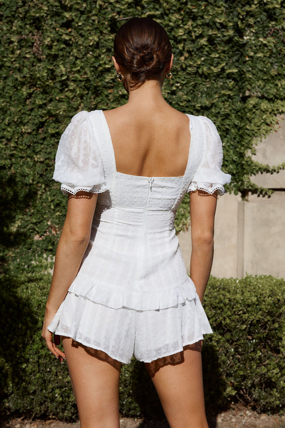 Steal the show in our super cute Young Love romper. Perfect for a flirty date with that boy you've had your eye on. We are obsessed with that tied bust and frill trim detail! Team it with mules and hoops earrings and get ready for a second date!