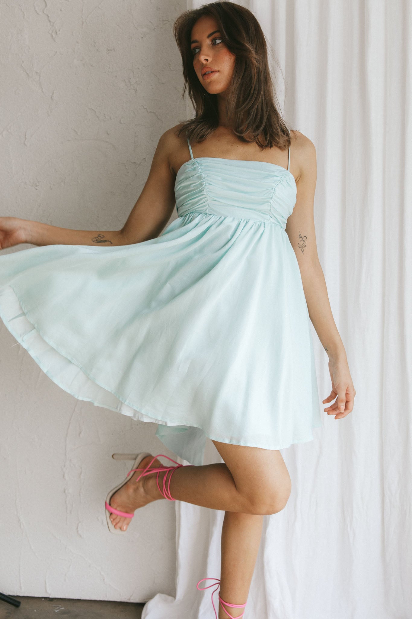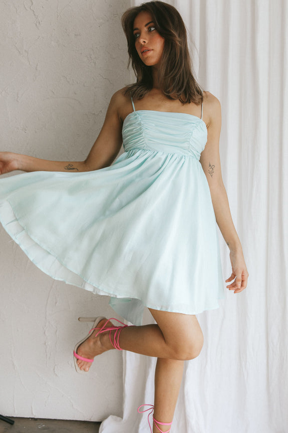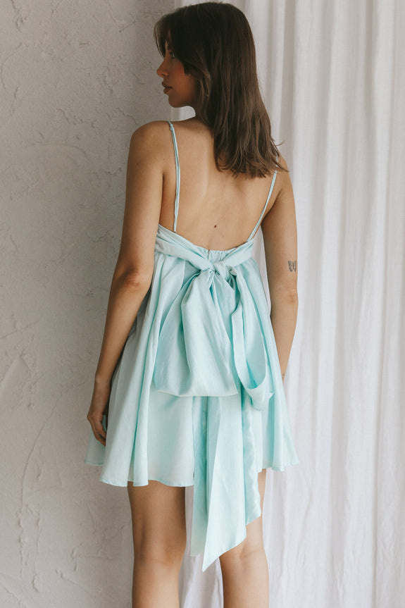 Turn heads in our pretty Zhen mini dress. Featuring a gorgeous bow tie in the back, we're in love! Perfect for a birthday party or wedding. Team it with strappy heels and a tote for a feminine look we are loving.