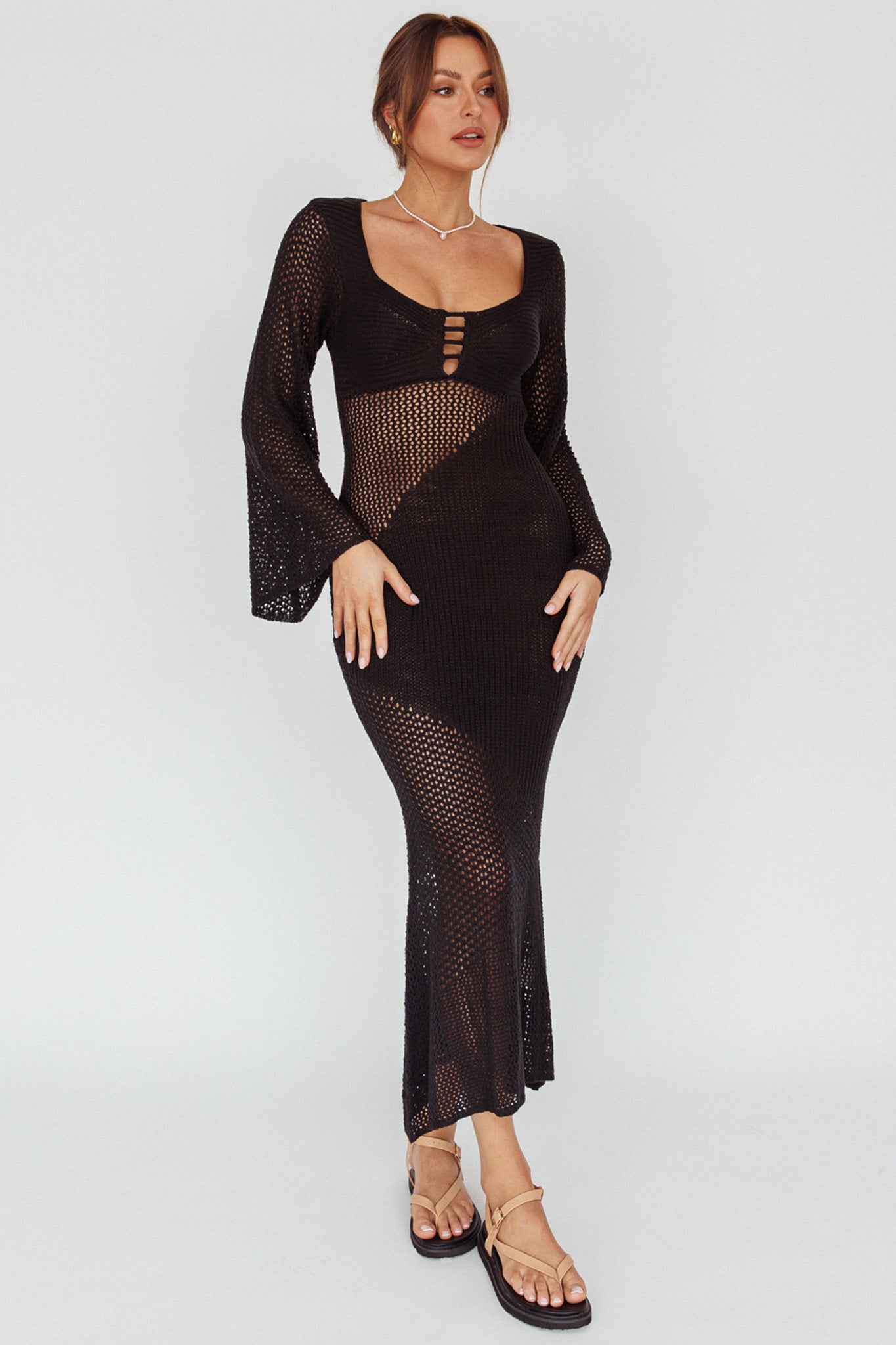 - Black crochet maxi dress