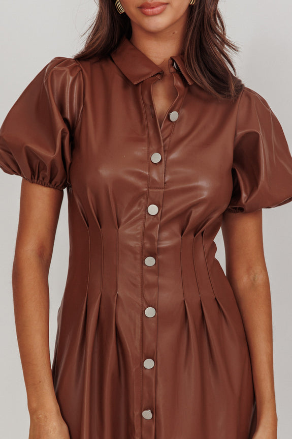 Zurich A-line Puff Sleeve Midi Dress Chocolate